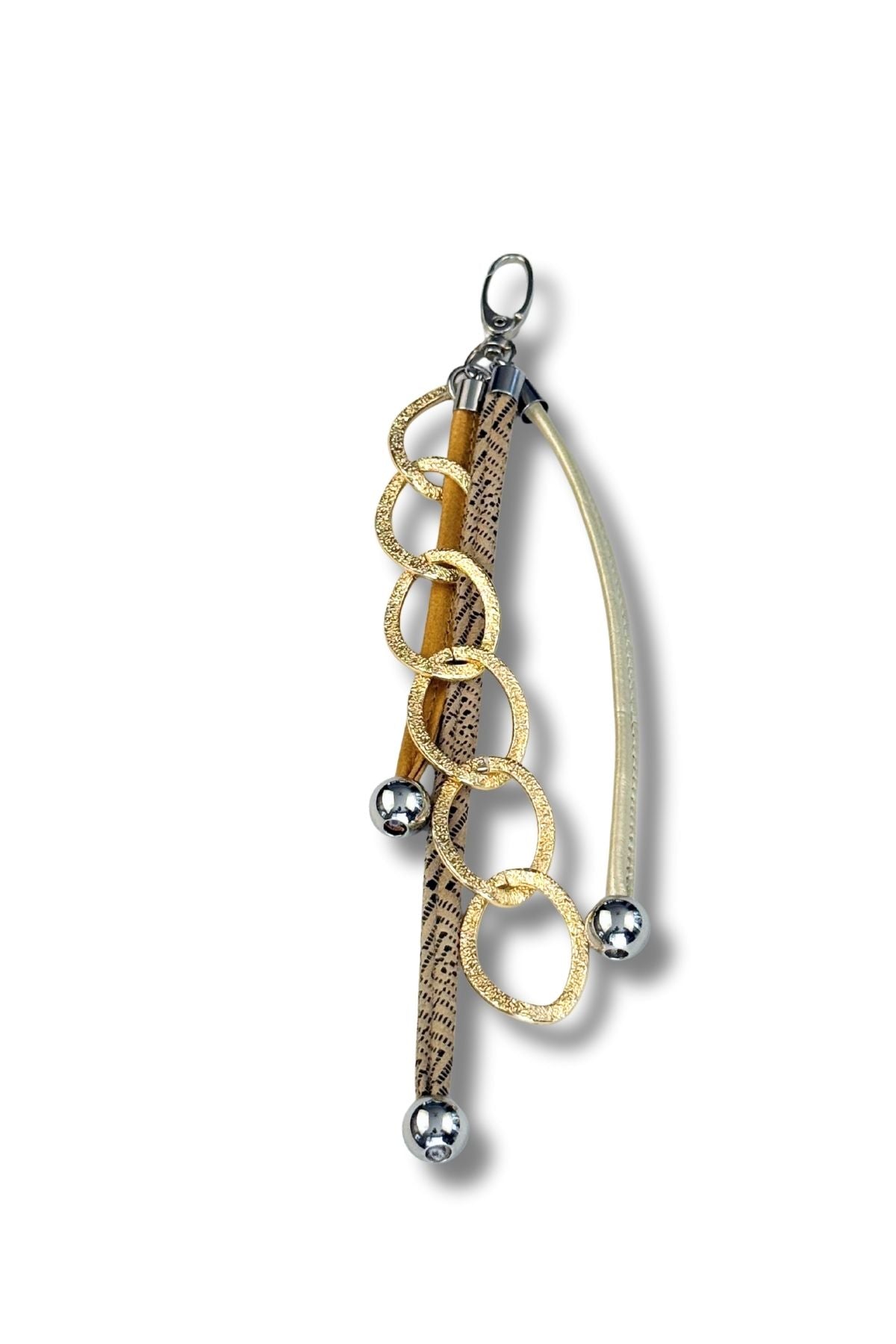Elevate your everyday carry with this statement bag charm featuring a chunky gold link chain and supple leather accent. The oversized design catches light beautifully while adding instant personality to any handbag, tote, or clutch. Perfect for those who believe accessories deserve the spotlight—because why blend in when you can stand out? Durable construction ensures your charm stays fabulous through countless adventures.