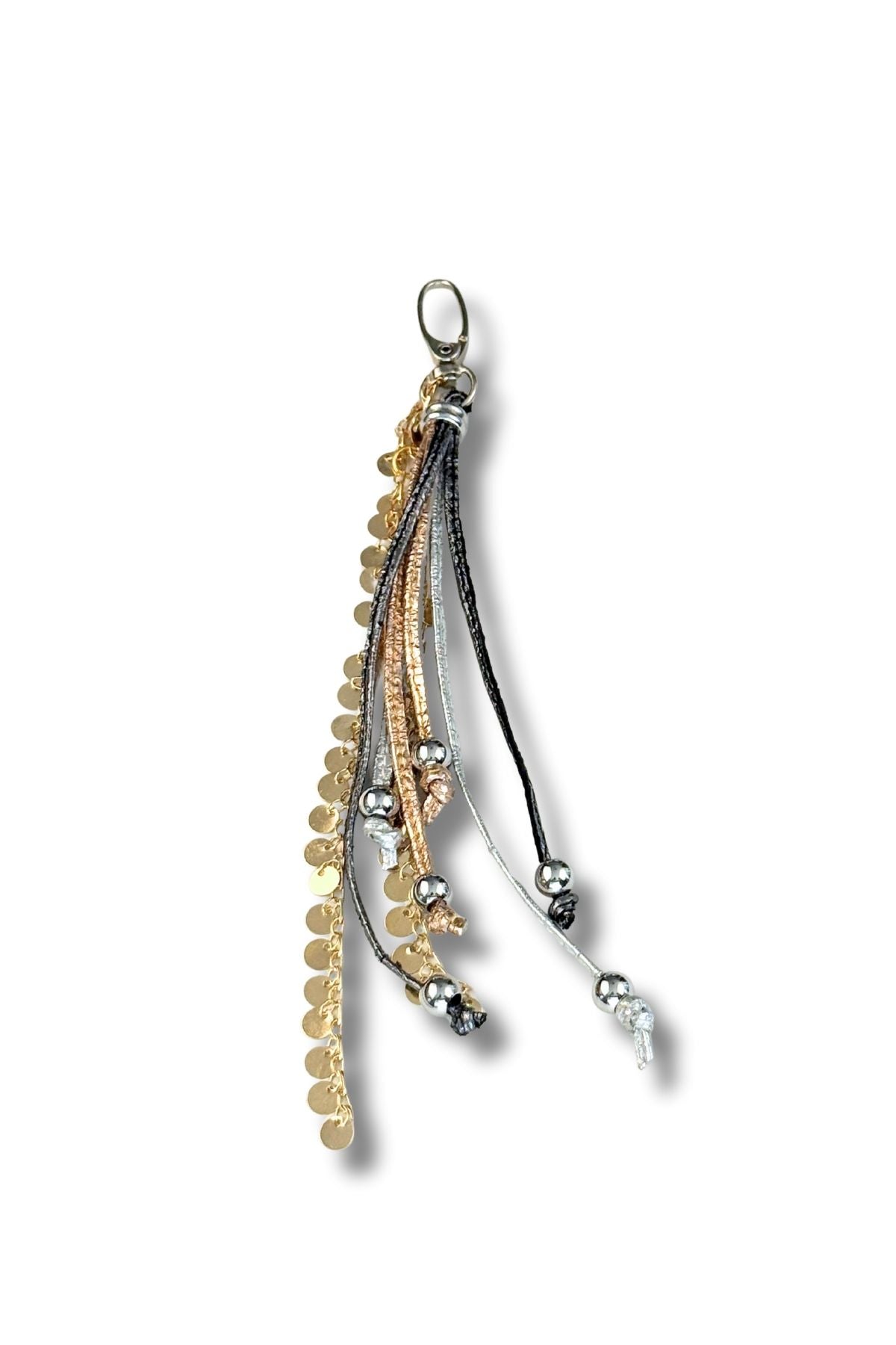 Add a touch of Bollywood glamour to your everyday carry with this eye-catching leather bag charm. Featuring a striking Y-style chain design with authentic leather accents, it clips effortlessly to your favorite bag, purse, or keychain. Perfect for those who love bold, statement accessories that spark conversation. Mix and match with other charms to create your signature look—because your bag deserves to shine as bright as you do!
