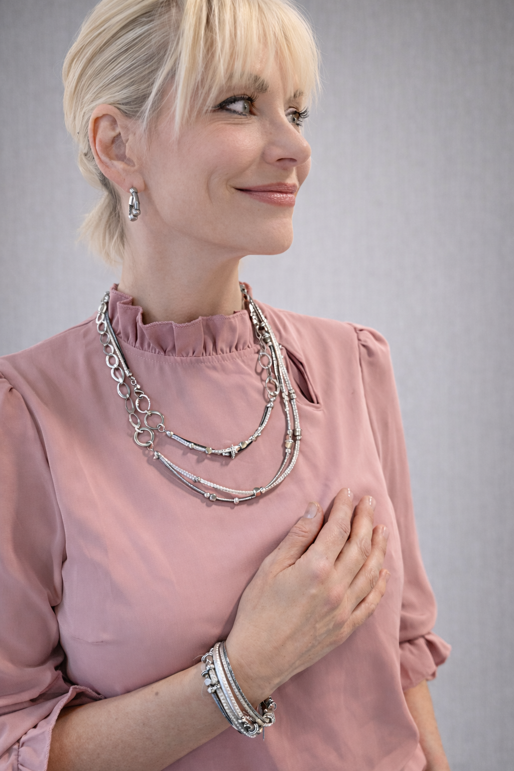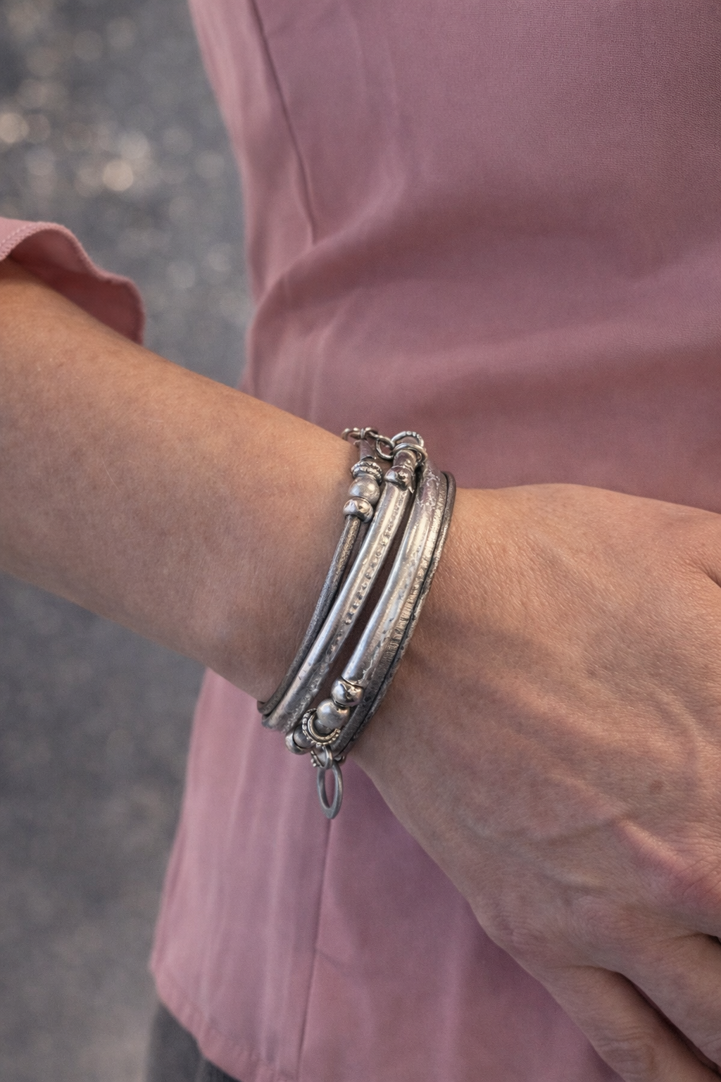 Experience effortless elegance with this three-strand coil bracelet, engineered for simplicity and comfort. The innovative clasp-free design eliminates traditional fastening complications—simply slip it on and adjust the coil tension to your wrist. Crafted from lightweight materials, it pairs beautifully with leather accents and transitions seamlessly between casual and refined settings. The flexible coil construction allows natural movement while maintaining secure wear, making it perfect for stacking with complementary pieces. Ideal for those who prioritize both functionality and understated sophistication in their everyday jewelry.