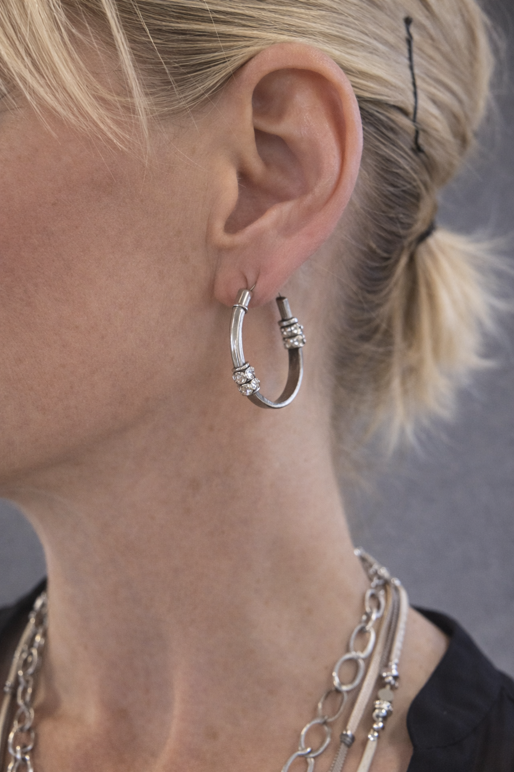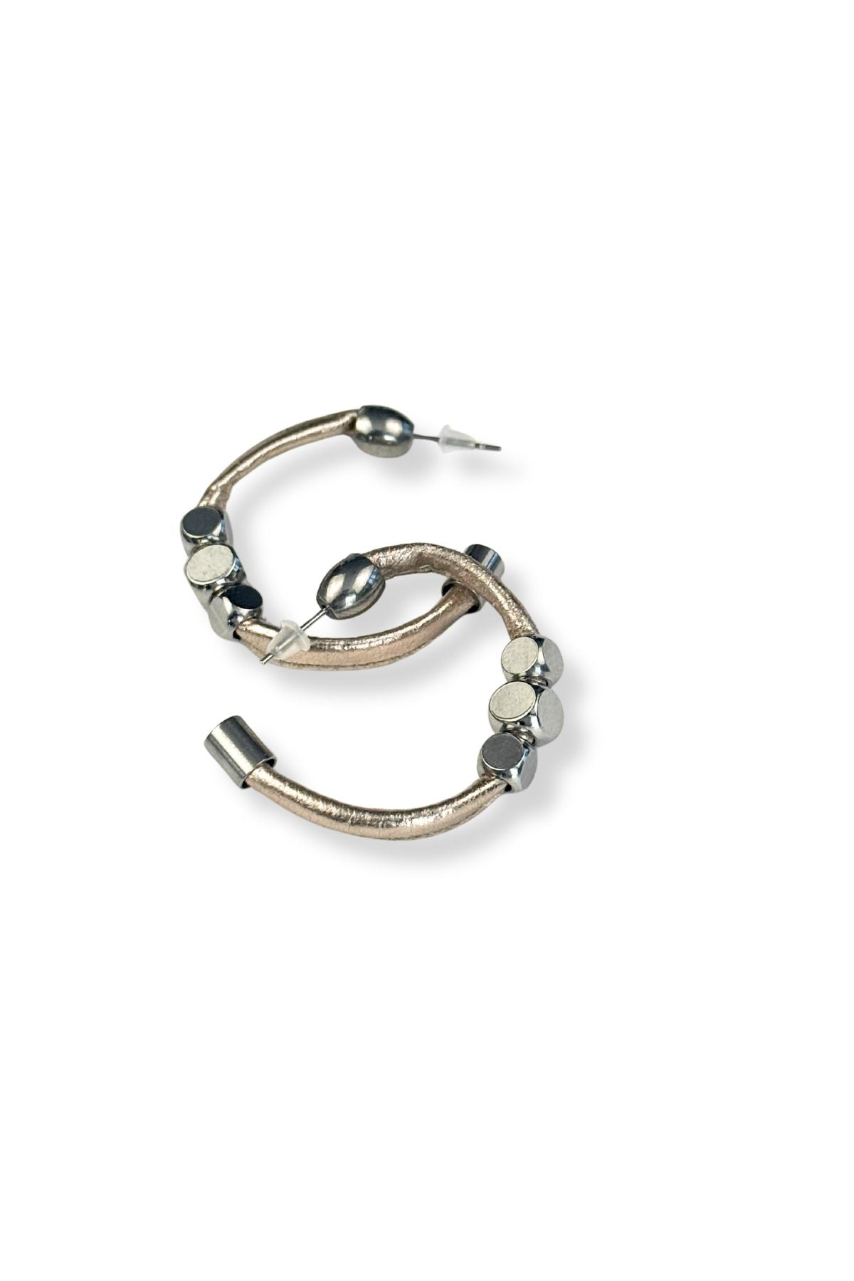 The classic hoop silhouette gets a daring upgrade through sculptural coiling that catches light from every angle. Surprisingly lightweight despite its substantial presence, it anchors any outfit with understated power.