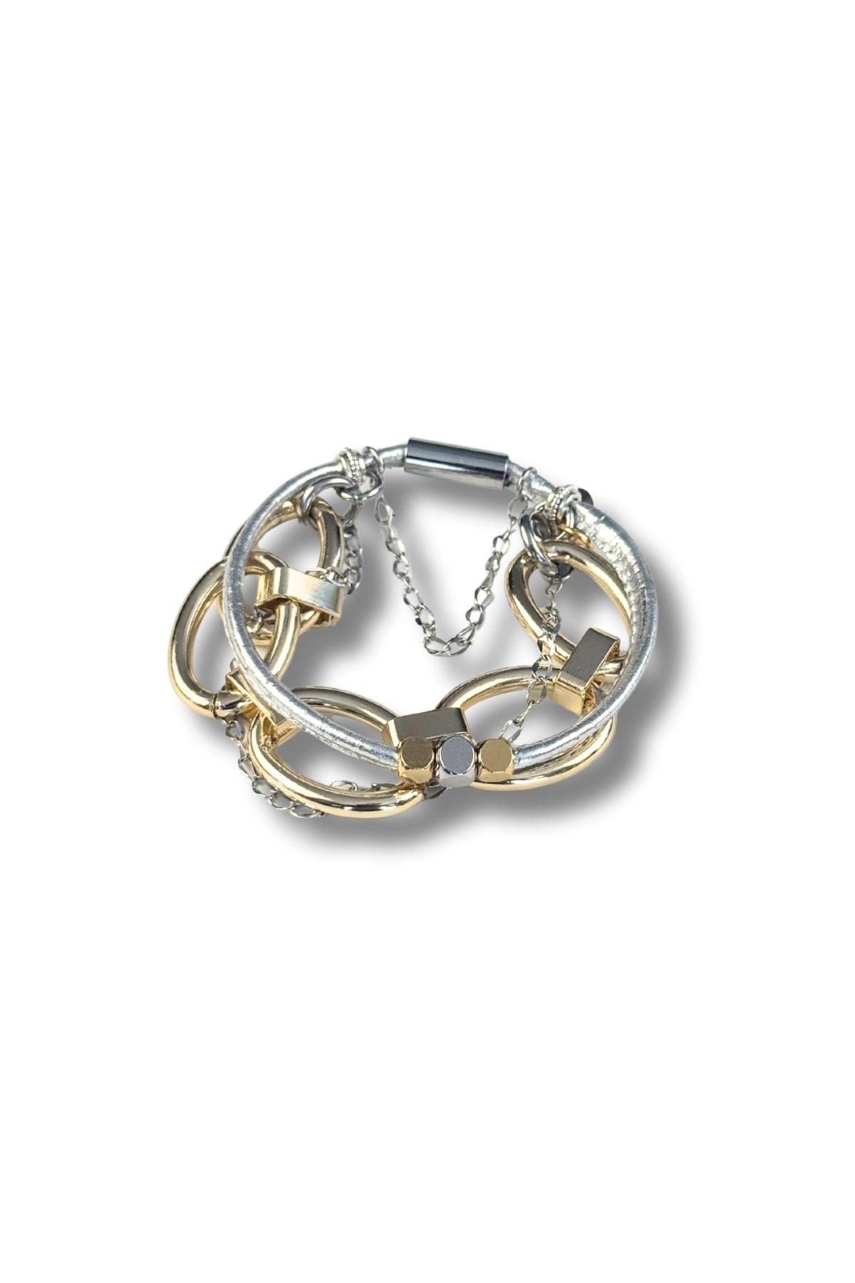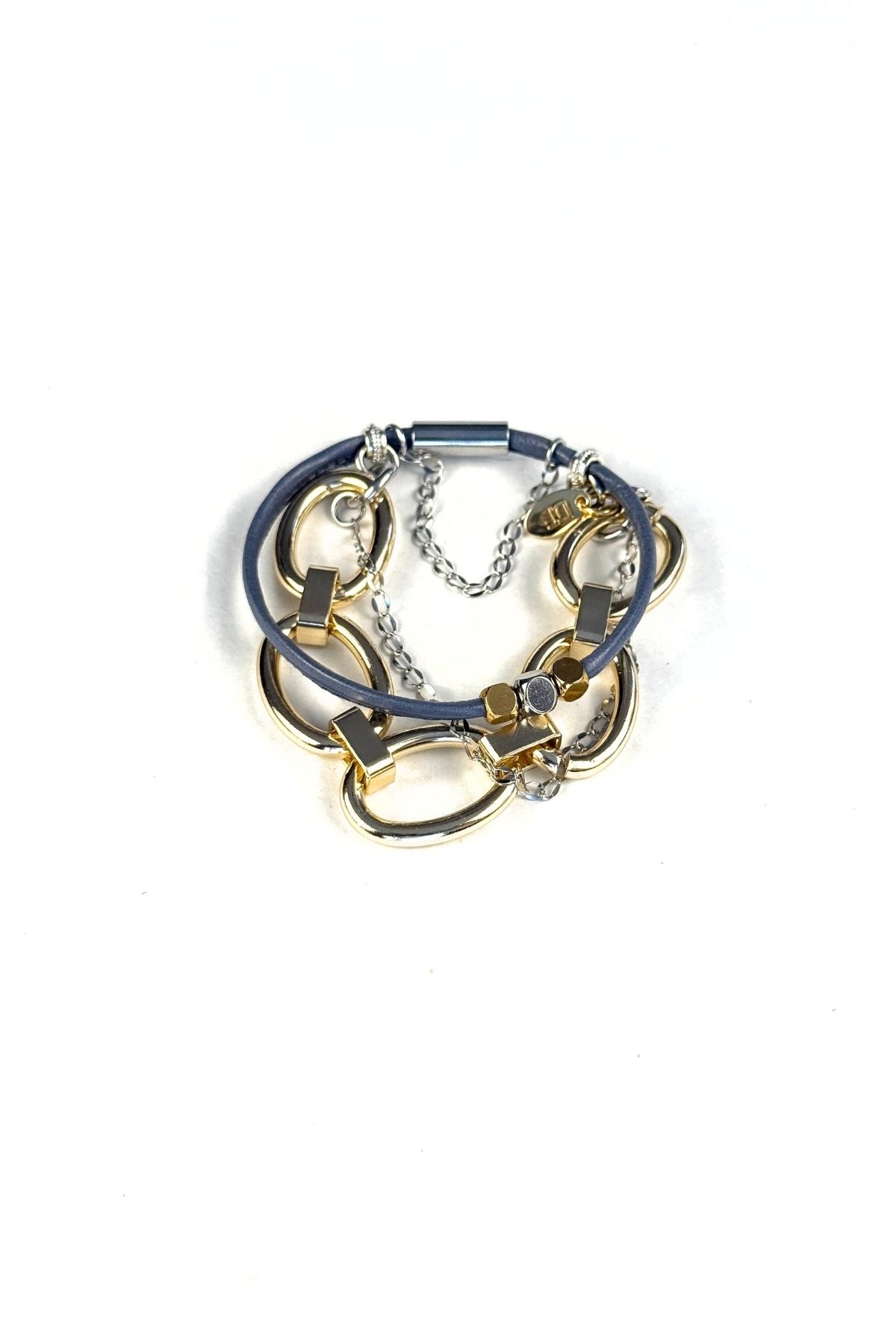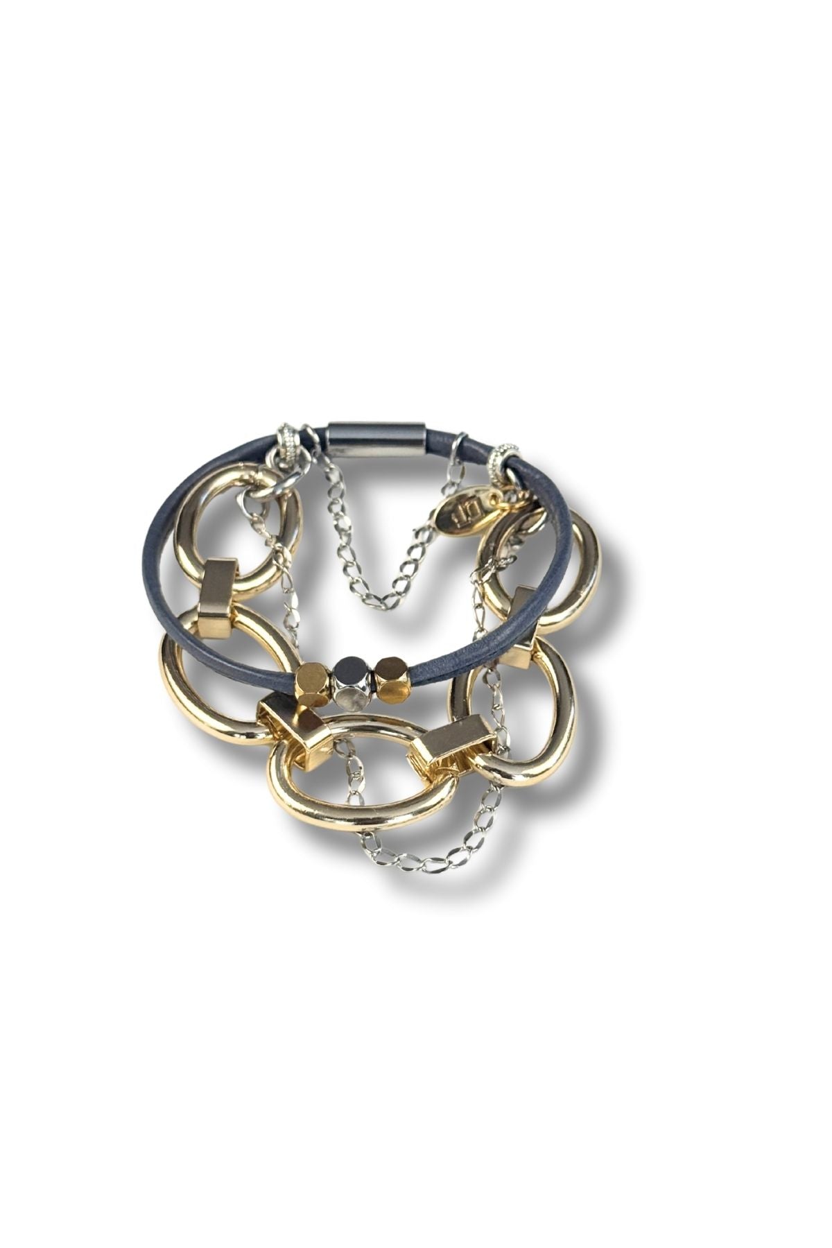 Three strands including bold chain detailing, leather coil and mixed beads plus charm accents make this bracelet a stack all on its own. The engineered firm coil backbone delivers structural integrity while remaining comfortable enough for continuous wear. Built for more stacking, this piece is light as air and pairs beautifully with complementary bracelets in our collection to create a curated layered look. A thoughtfully designed accessory that balances durability with understated elegance.